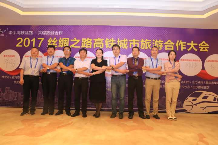 寶雞市市長惠進才在大會上發言 8月16日電(馮國 楚凡)為充分利用高鐵時代的新機遇,以牽手高鐵絲路,共謀旅游合作為主題的2017絲綢之