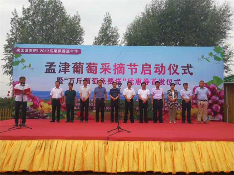 7月28日上午,由孟津縣旅游業商會主辦的孟津葡萄采摘節啟動儀式暨萬斤葡萄免費送優惠券首發儀式在孟津縣送莊鎮洋豐生態園舉行。