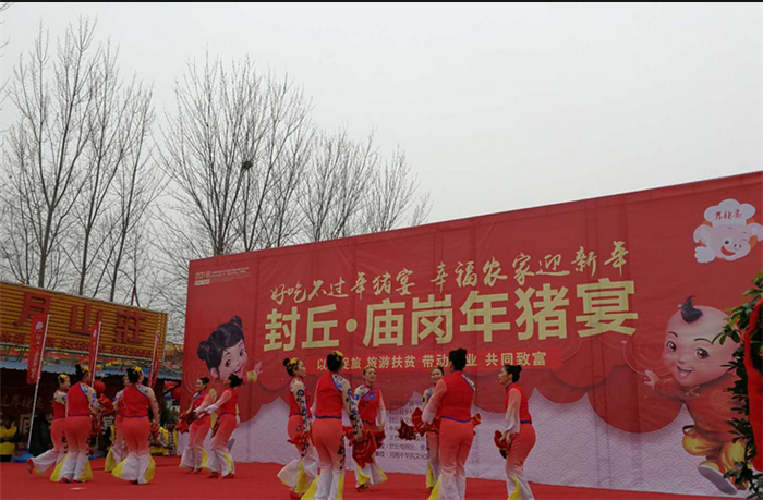 1月24日,封丘縣廟崗村人山人海,熱鬧非凡,首屆封丘廟崗年豬宴在歡快的秧歌舞表演中隆重拉開序幕。本次活動由河南省廣播電視臺新農村頻道