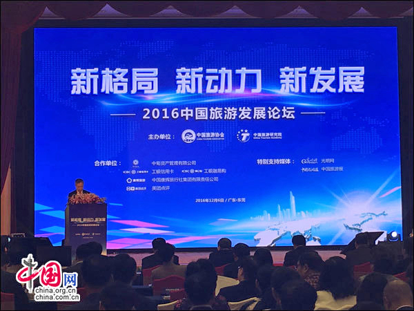 12月6日,以新格局、新動力、新發(fā)展為主題,由中國旅游協(xié)會與中國旅游研究院共同主辦的2016中國旅游發(fā)展論壇在廣東省東莞市舉辦,國家