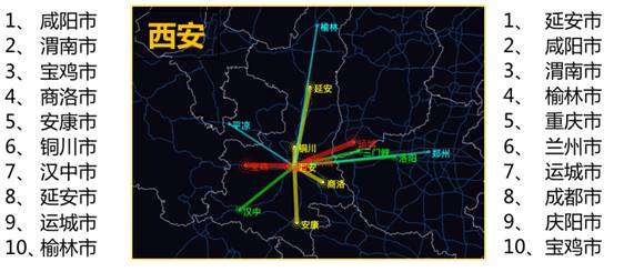 通過對比發現,出行人次基本上反應了五大城市自駕游游客出行的絕對關系。出游人次最多的是上海和北京,最少的是烏魯木齊。同時為了尋找自駕游出游人次和某些客觀因素的相關性時,我們參考了各地的機動車保有量和常住人口。我們發現,當出行人數與機動車保有量的比值越大時,意味著人們出游更多的依賴私家車,從一個側面反映了節假日出游時道路的擁堵程度。我們也可以看出西安是一個自駕游出行更為活躍的城市,因為出行人口相對于西安的人口和機動車保有量而言比值很高,但是大多數出行集中在短途。最后當我們分析出行距離與出行人次和過夜人次的關系時主要反映交通的便利程度是否方便人們在盡可能的時間內返回出發地。烏魯木齊在對比中呈現趨于中長線自駕游的趨勢,其長途出行比例和過夜率均為五城市最高。